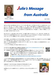NEWSLETTER No.105(2021春・夏号)にて会員様向けにお送りしました「Julie さんからのメッセージ」とメッセージの原文、「COVID-19大流行中のメンタルヘルスケア」を掲載いたします。