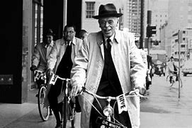 | 写真1:ボストンの街を自転車で通勤中のホワイト先生 |