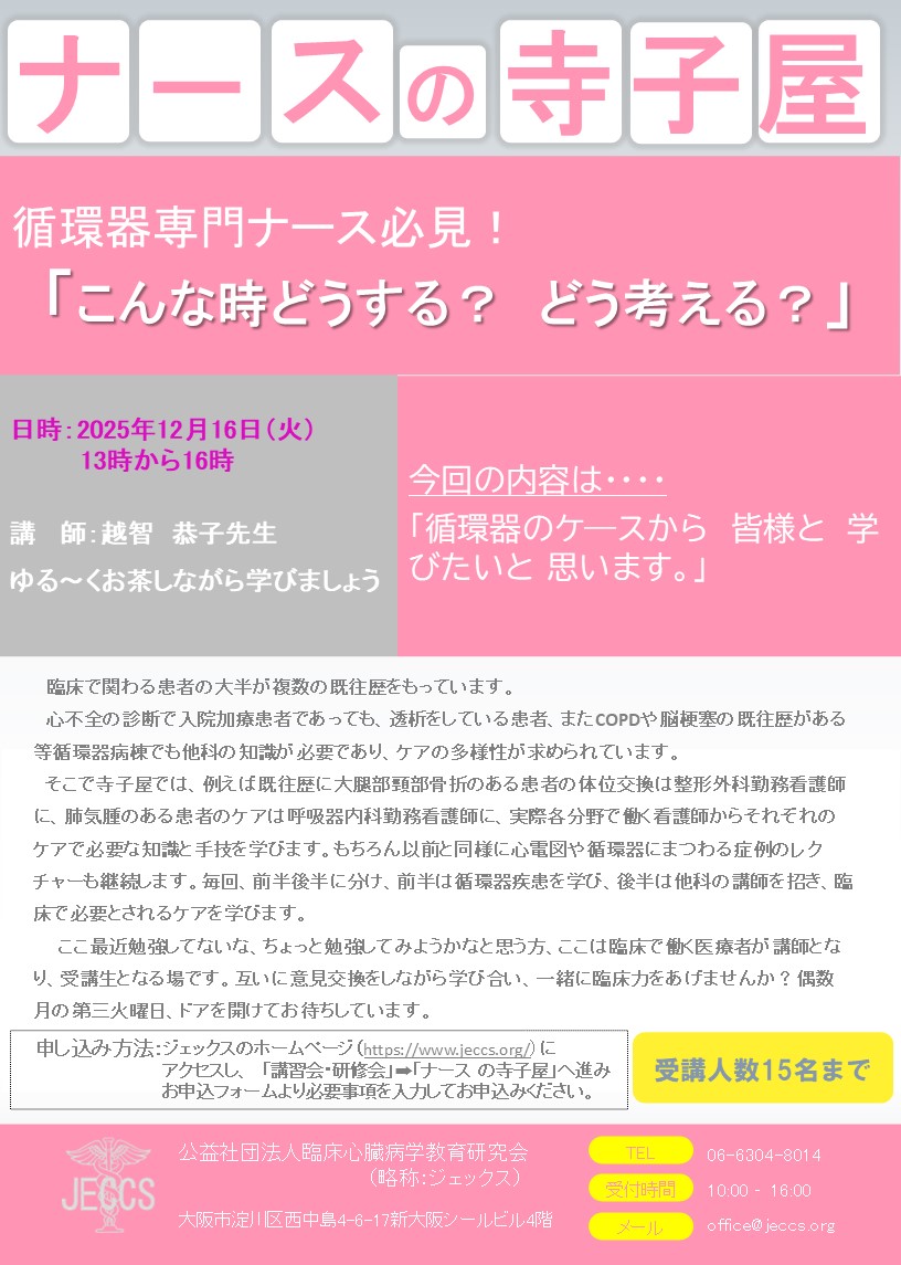 ≪会場のみ!!オンラインは対応しておりません!!≫【ナースの寺子屋 】こんな時どうする? どう考える?
